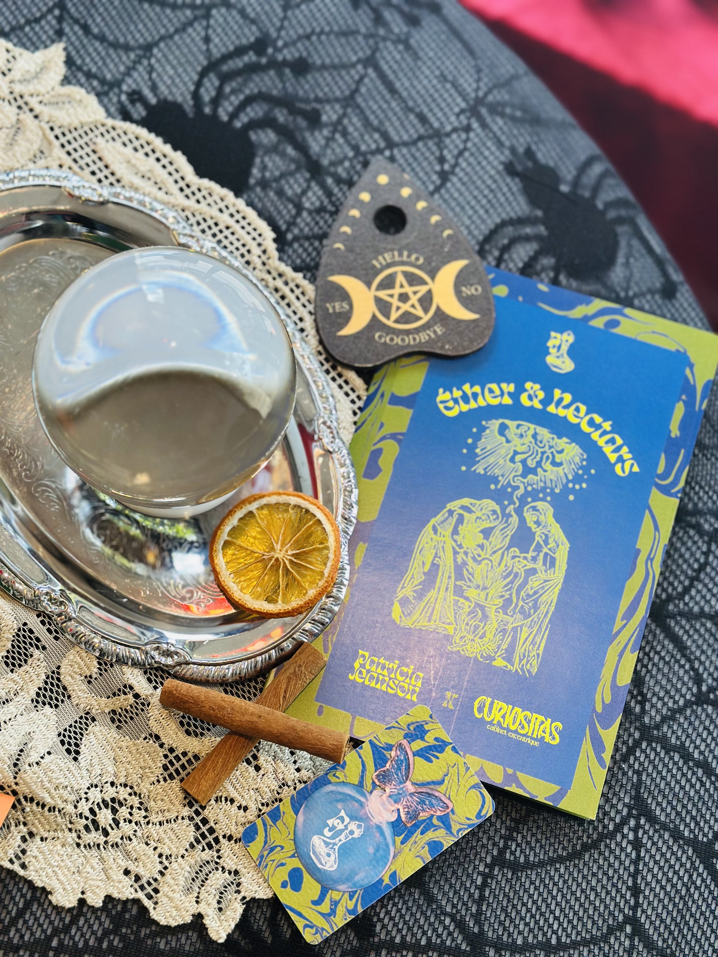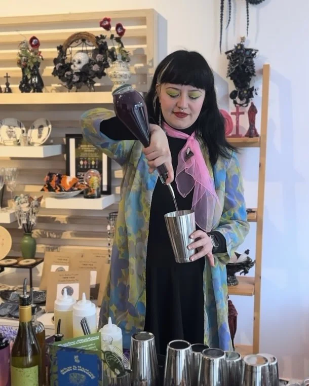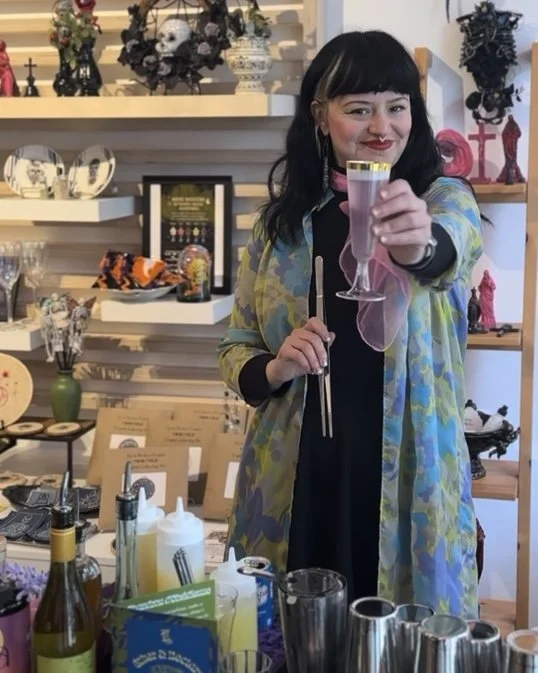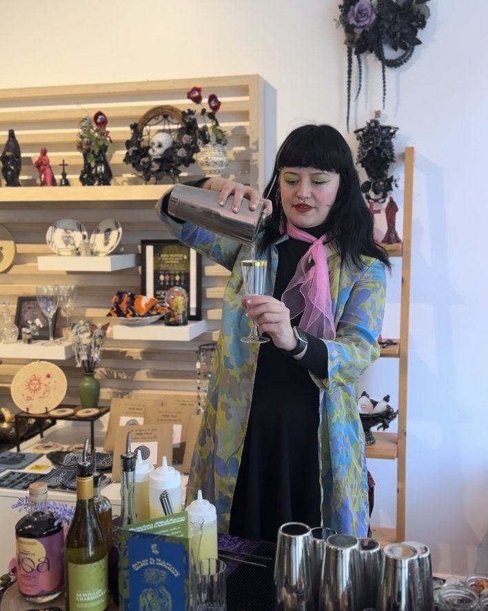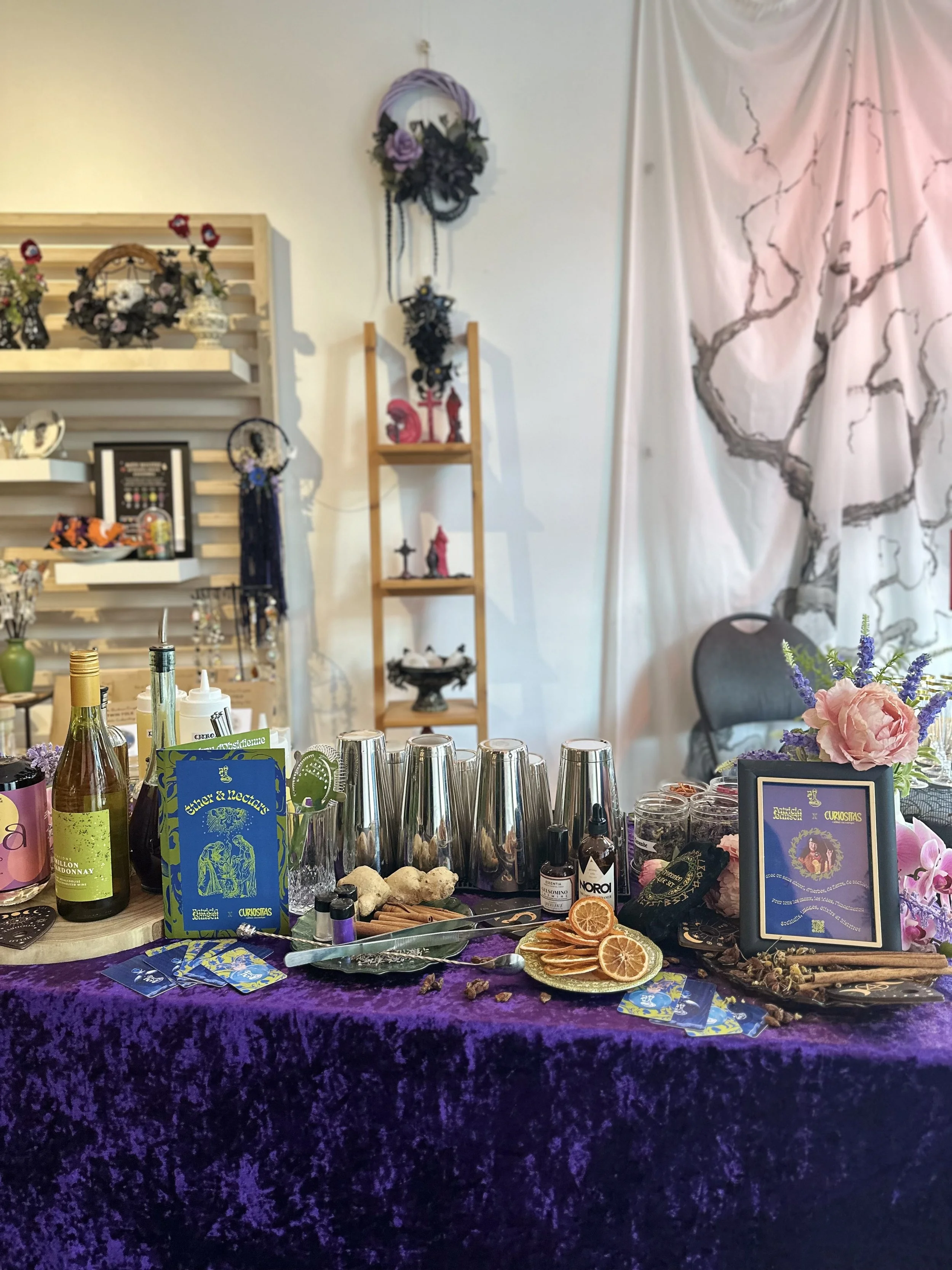 Je propose une dégustation et une masterclass autour de mes cocktails sans alcool et de mes sirops maison, que vous pourrez déguster dans une ambiance enveloppée de fleurs, d’encens et de douces intentions. Des pierres énergétiques et le tarot viendront aussi habiter cette magnifique boutique éphémère, pour ajouter à l’expérience une dimension magique et chaleureuse.