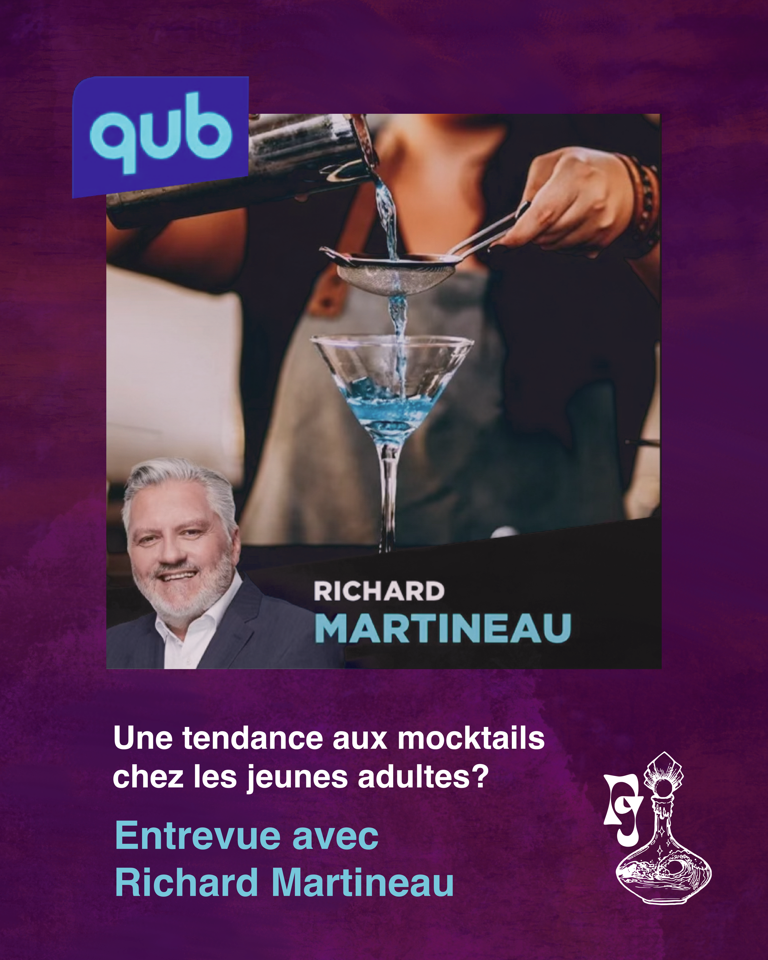J'ai eu le grand plaisir de m'entretenir avec Richard Martineau sur le mouvement grandissant des cocktails sans alcool auprès des jeunes adultes lors de l'émission du 3 avril dernier diffusée en direct sur QUB.