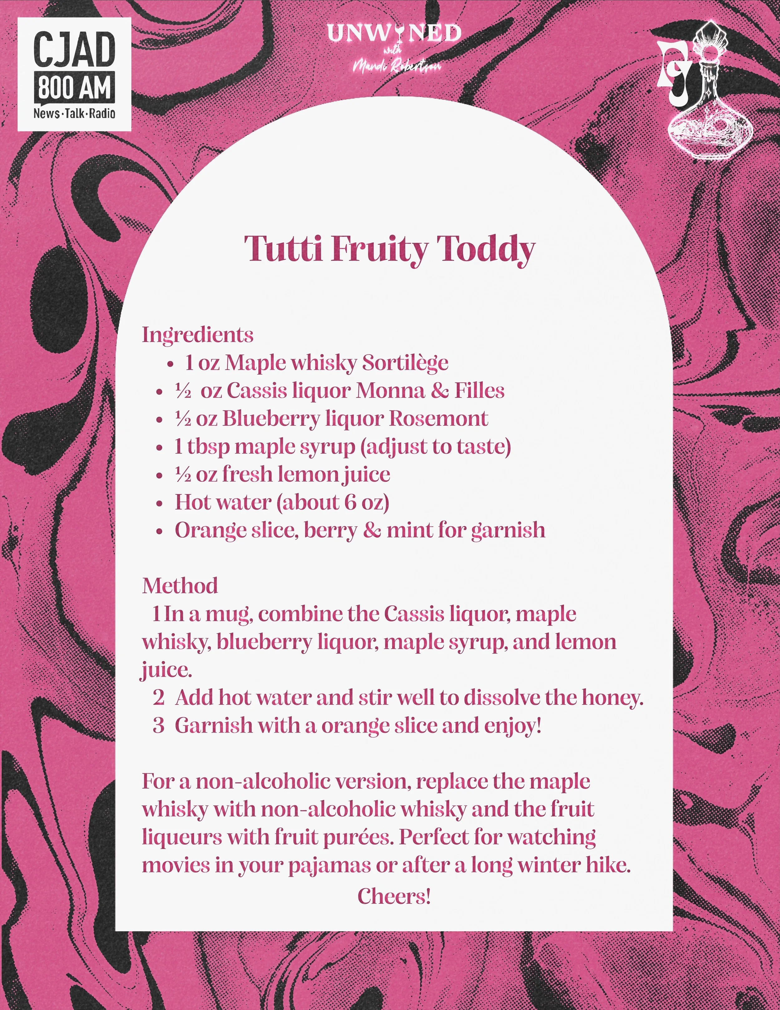 Tutti Frutti Toddy - Unwined with MandiA fruity version of the hot toddy with local products and a touch of maple, perfect for the season, to go hike in our beautiful forest or simply for staying in your pajamas! Listen the episode of Unwined here!